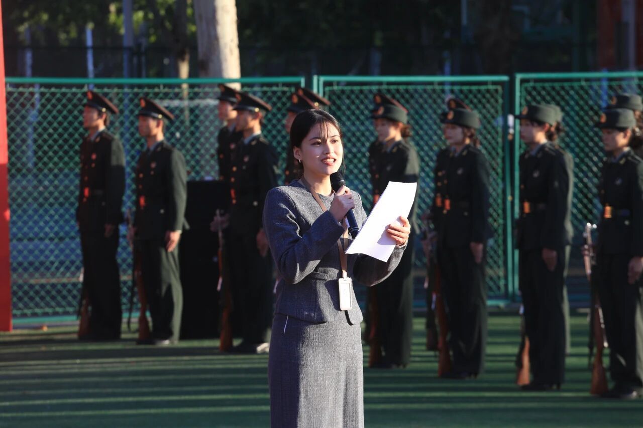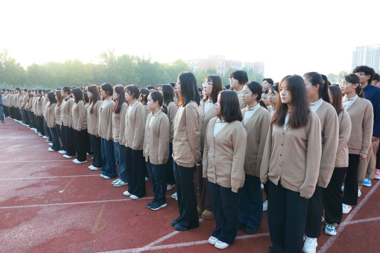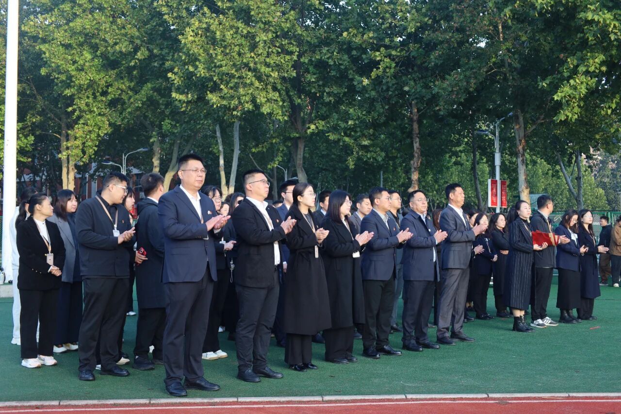 在师生的热切注目下,英姿飒爽的国旗护卫队迈着铿锵有力的步伐,护送五星红旗走向升旗台。伴随雄壮激昂的《义勇军进行曲》,五星红旗冉冉升起,现场师生肃立注目,高唱国歌,以庄重的姿态表达对伟大祖国的无限热爱与美好祝福。
