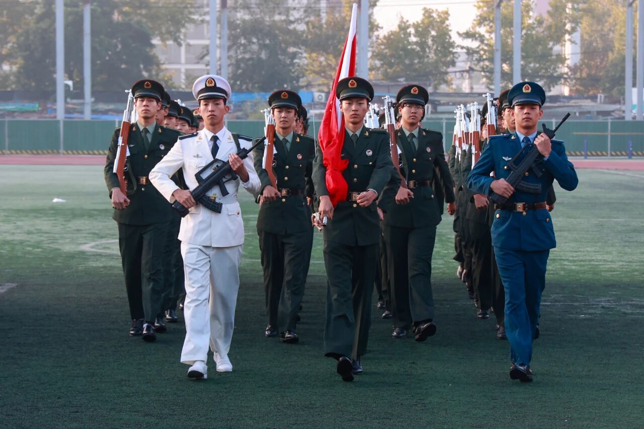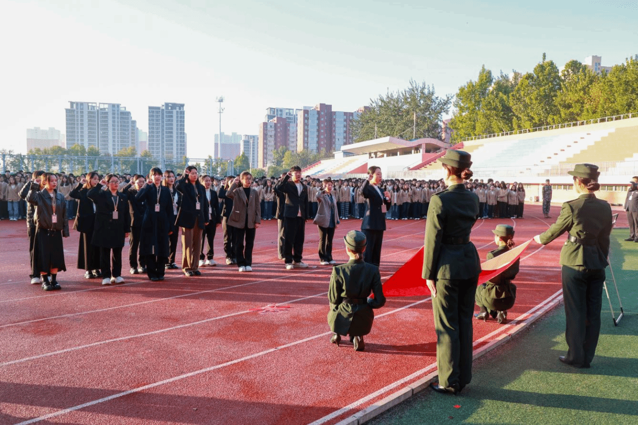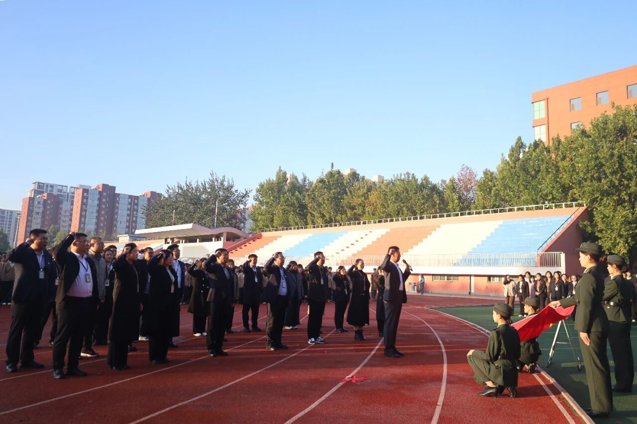 在师生的热切注目下,英姿飒爽的国旗护卫队迈着铿锵有力的步伐,护送五星红旗走向升旗台。伴随雄壮激昂的《义勇军进行曲》,五星红旗冉冉升起,现场师生肃立注目,高唱国歌,以庄重的姿态表达对伟大祖国的无限热爱与美好祝福。