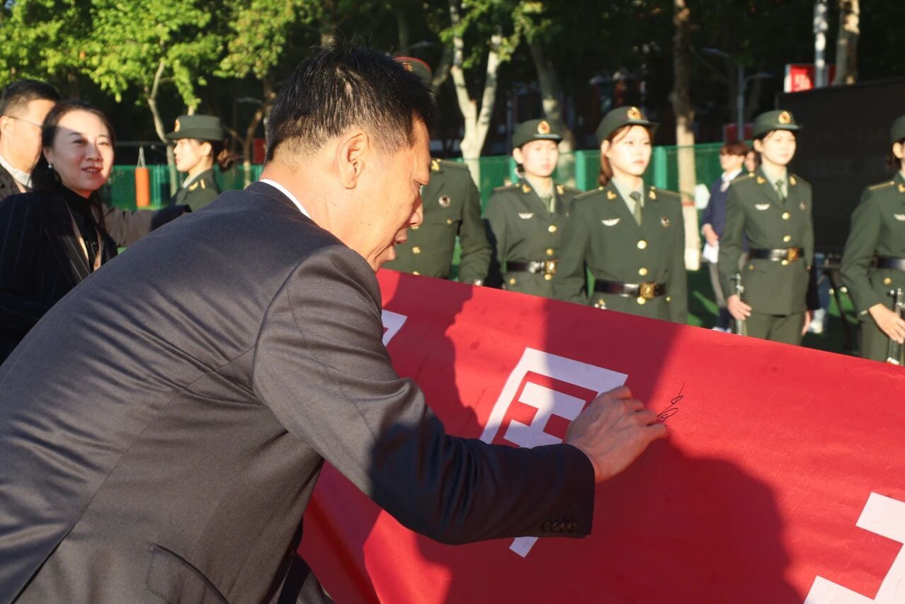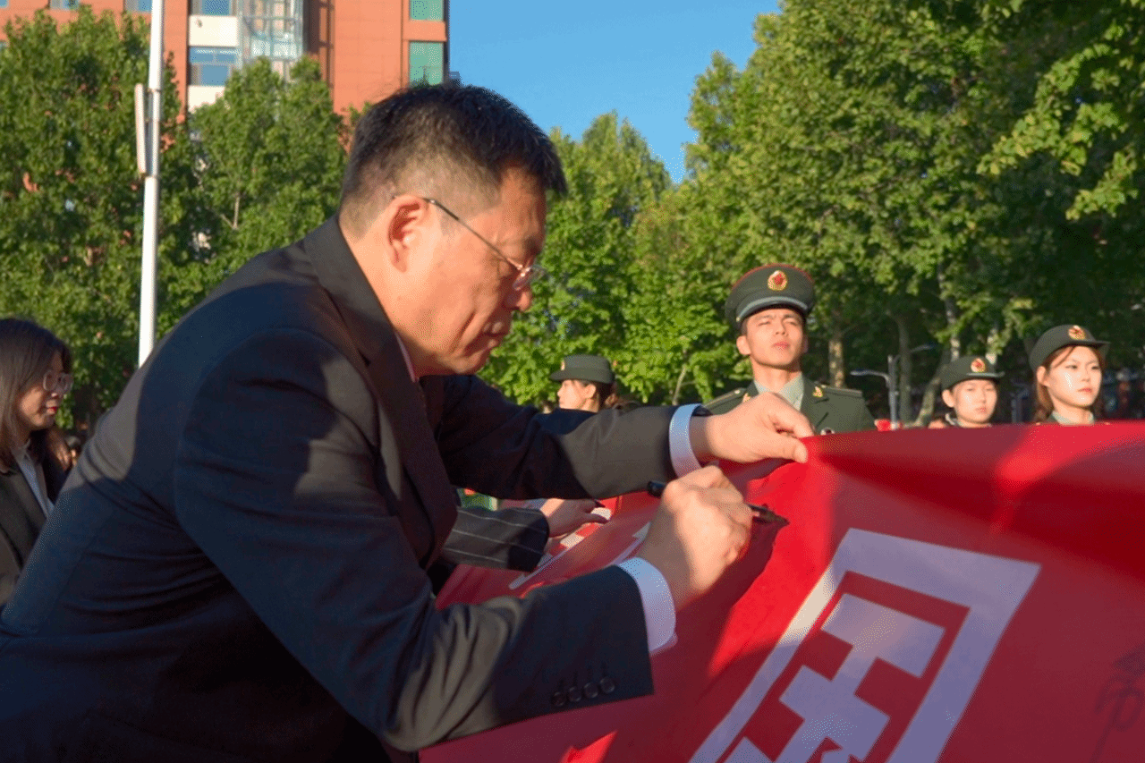 仪式尾声,师生代表在条幅上郑重签名承诺,一个个名字如溪流汇海,在党旗下凝聚成矢志报国的时代洪流。每一次国旗升起,都是我们在这段战略征程上的一次整装再出发。这场建校以来党建引领、形式创新,且全面覆盖党员、团员、青年参与广度的主题升旗仪式,既是学校深化“党建+思政”育人格局,推进“党员带团员、团员带青年”的生动实践,也是我校坚定不移地走高水平应用型大学之路,培养实践能力、服务国家需求的报国行动最生动地体现。全体师生将把仪式激发的爱国热情,转化为建设教育强国的实际行动,在民族复兴的征程中书写属于新时代的青春华章。