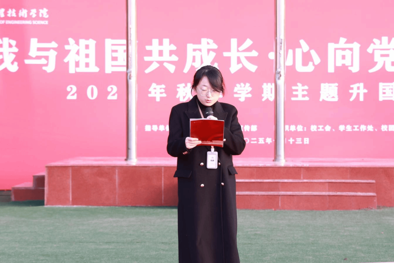 教师党员代表土木与建筑学院学生党支部书记、学管办主任刘腾,青年教师及工会工作者代表马克思主义学院专任教师康佳,学生代表人工智能学院2025级数据科学与大数据技术3班牛湛博依次作国旗下讲话,号召河工青年坚定不移听党话、跟党走,将爱国、爱校、爱家情怀自觉融入实现中华民族伟大复兴的奋斗之中,为强国建设、民族复兴贡献力量。