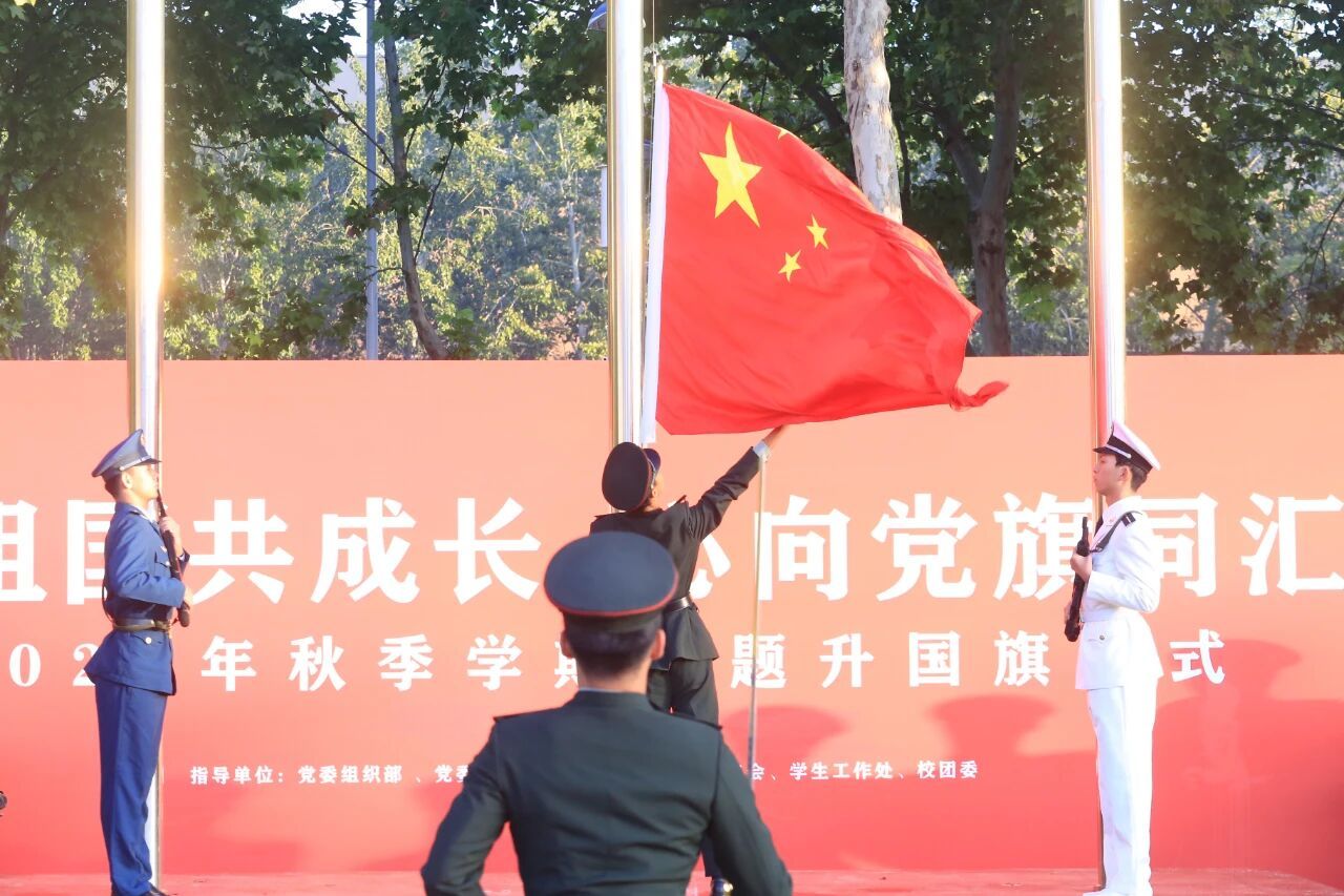 晨曦初露,红旗漫卷。10月13日早7时,我校庄严举办“我与祖国共成长·心向党旗同汇聚”主题升旗仪式。校领导、各党总支(直属党支部)书记、相关职能部门负责人、工会青年干部、党员、团员、青年师生代表近三千人参加升旗仪式。仪式由党委组织部部长李忆秋主持。
