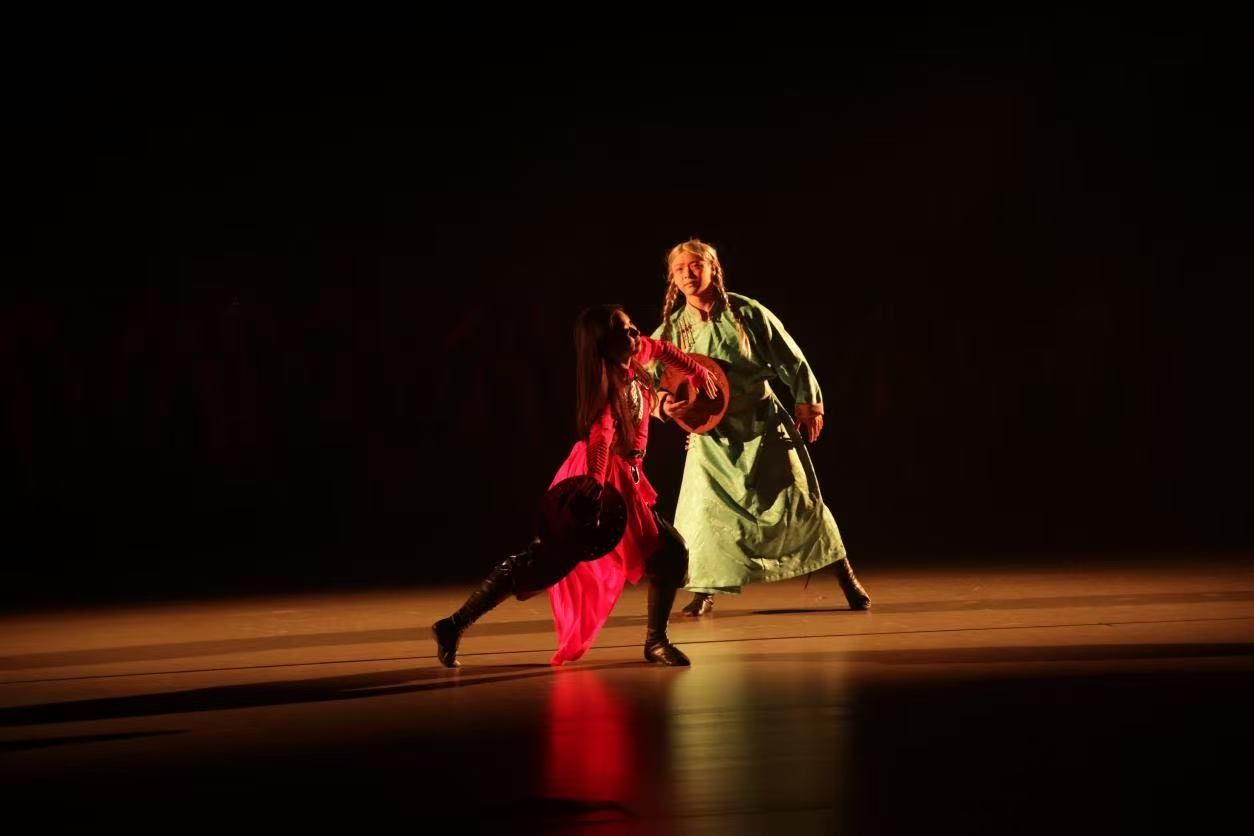 本期大讲堂创新性地以中国地理文化空间为叙事框架,系统阐释了舞蹈与地域风貌、民族精神及时代脉络的内在联系。西南傣族舞蹈《喃诺唤山》以“三道弯”体态模拟水流凤竹,展现人与自然和谐共生;蒙古族作品《胡杨赞》以抖肩、柔臂等动作,赞颂草原生命的顽强;东北秧歌《待嫁》以诙谐的扭摆节奏展现黑土地的热情;藏族舞蹈《走向光明》通过沉稳的屈伸律动,隐喻雪域高原的历史变迁与时代新貌,传递爱国情怀;压轴作品《方寸之间》融合河北落子与蔚县剪纸非遗元素,体现“守正创新”的文化发展观。在郭佳伦老师的导览下,观众沿舞蹈轨迹,完成了一次从西南到北疆、从东北至西藏,再回归华北的文化巡礼。师生纷纷表示,这种沉浸式的艺术体验不仅提升了审美素养,更深化了对中华文明“多元一体”格局的理解与认同。