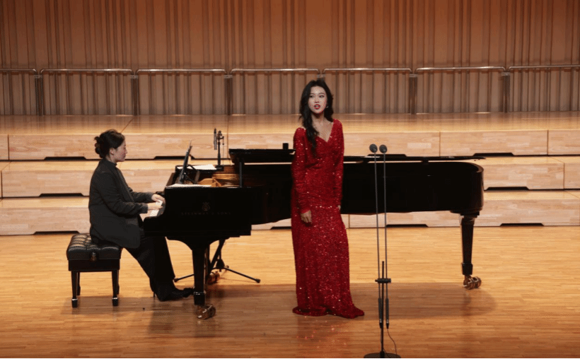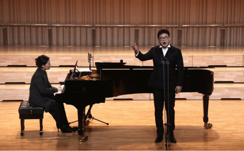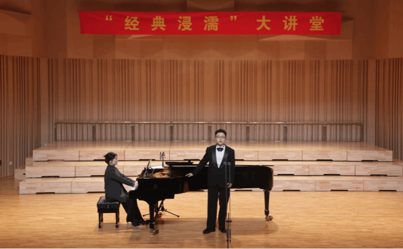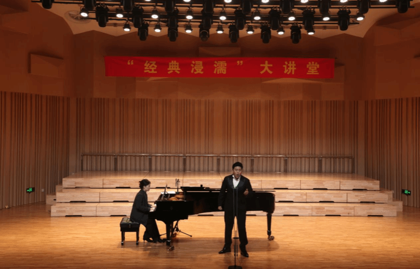 近期,“经典浸濡”大讲堂第七十六讲《声撼忠魄・信仰如磐——佘乐师生音乐会》在学校音乐厅深情上演。本次音乐会特邀天津音乐学院佘乐副教授携其学生团队联袂演出,我校艺术与传媒学院声乐歌剧系教师王天花担任钢琴艺术指导。学院领导与师生代表共同聆听,共赴一场艺术与精神交融的音乐之旅。