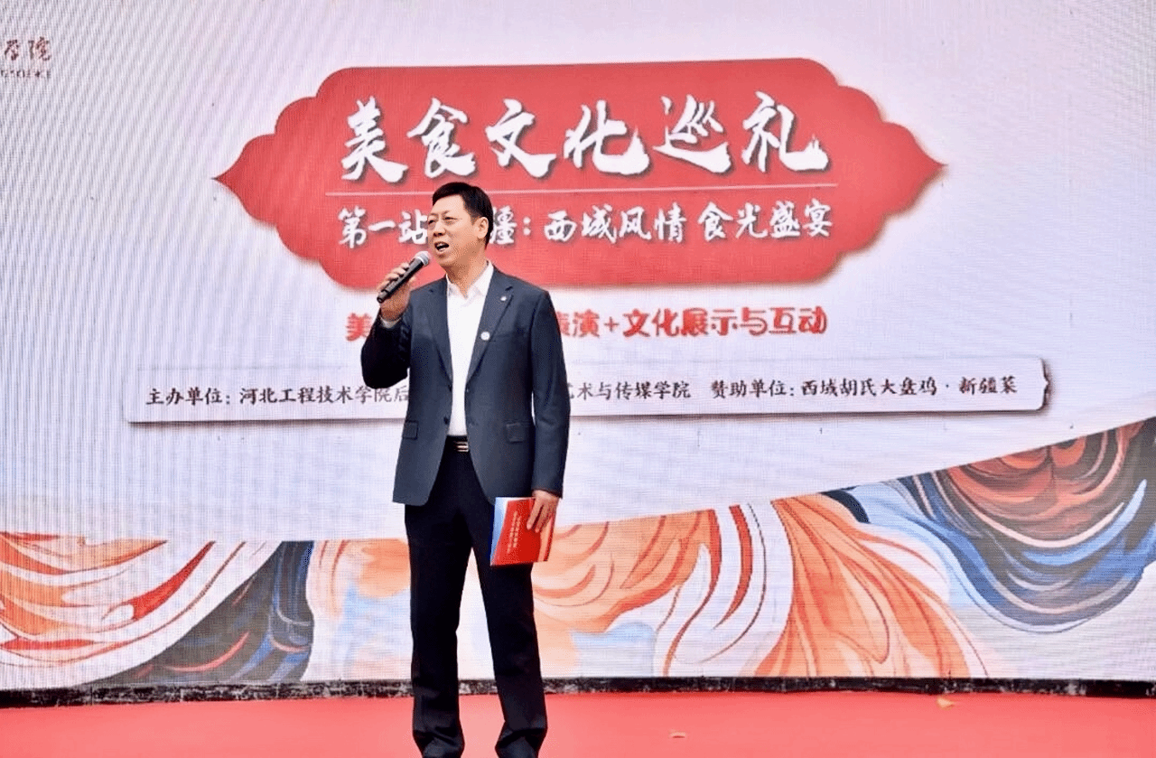 校领导出席本次活动并讲话,“七十年风雨兼程,七十年团结奋进,新疆大地发生了翻天覆地的历史巨变,这片热土上处处彰显着时代发展的蓬勃生机。今天,这场由后勤处精心策划打造的美食文化巡礼,有着深远而重大的意义,以美食为媒,以文化为桥,就是要让民族团结的种子在校园生根发芽,让中华民族共同体意识深入人心。”