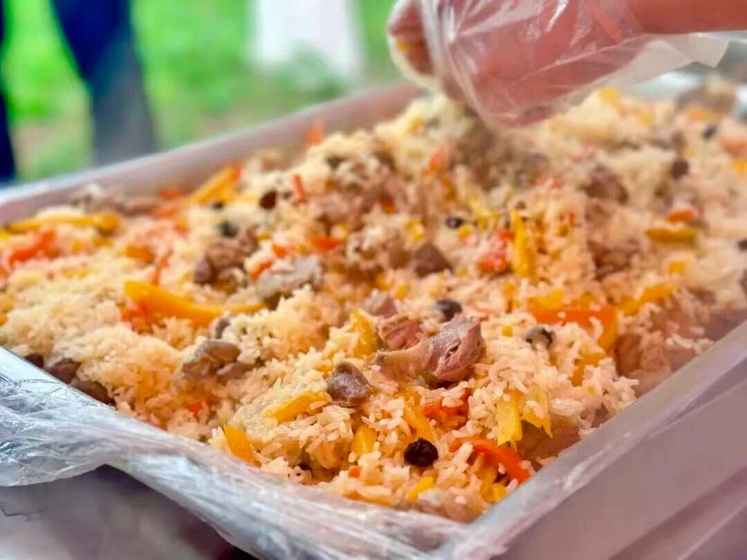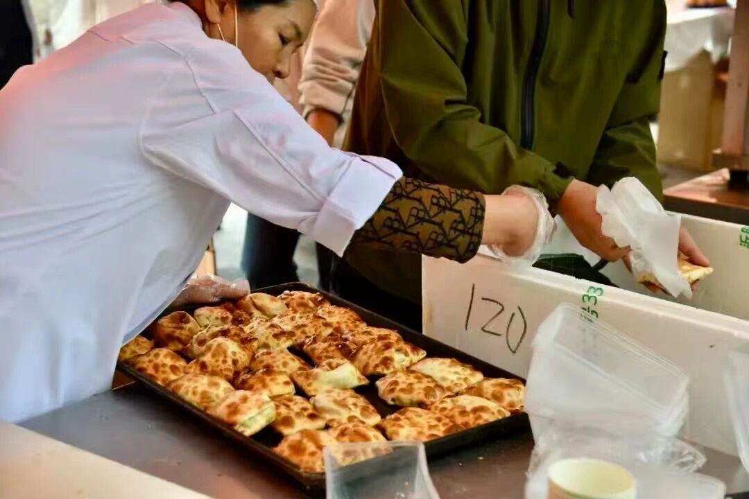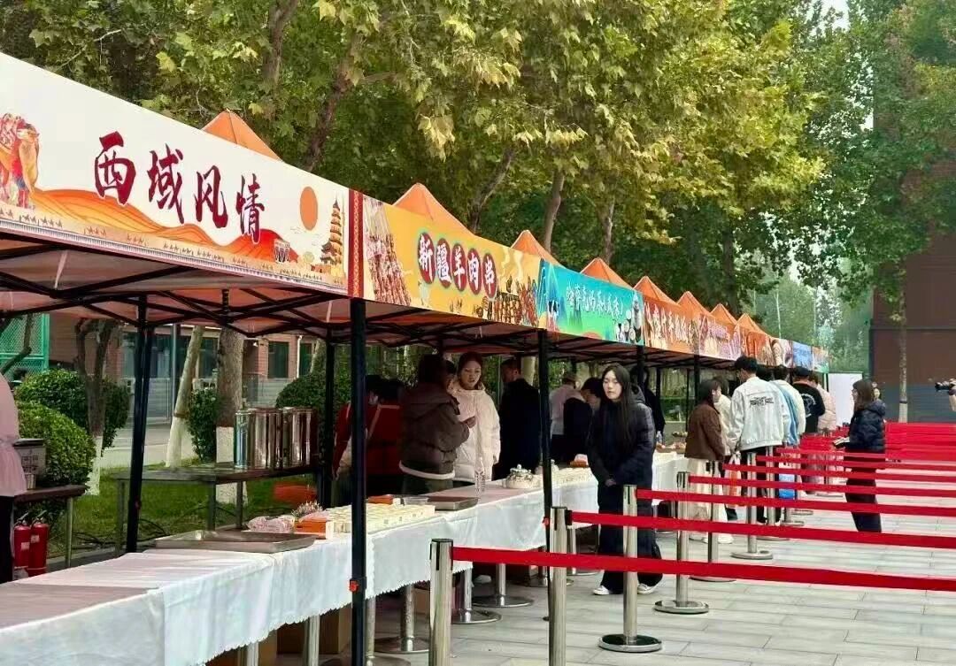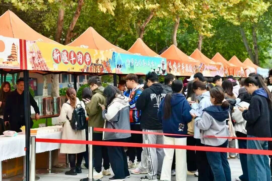 此次活动得到了赞助单位西域胡氏大盘鸡·新疆菜的大力支持,他们为师生打造了一场西域风味盛宴。活动现场,烤包子、羊肉串、手抓饭、塔城奶酪包等特色美食琳琅满目,供师生们免费品尝。等候品尝的队伍成为校园一道亮丽风景。