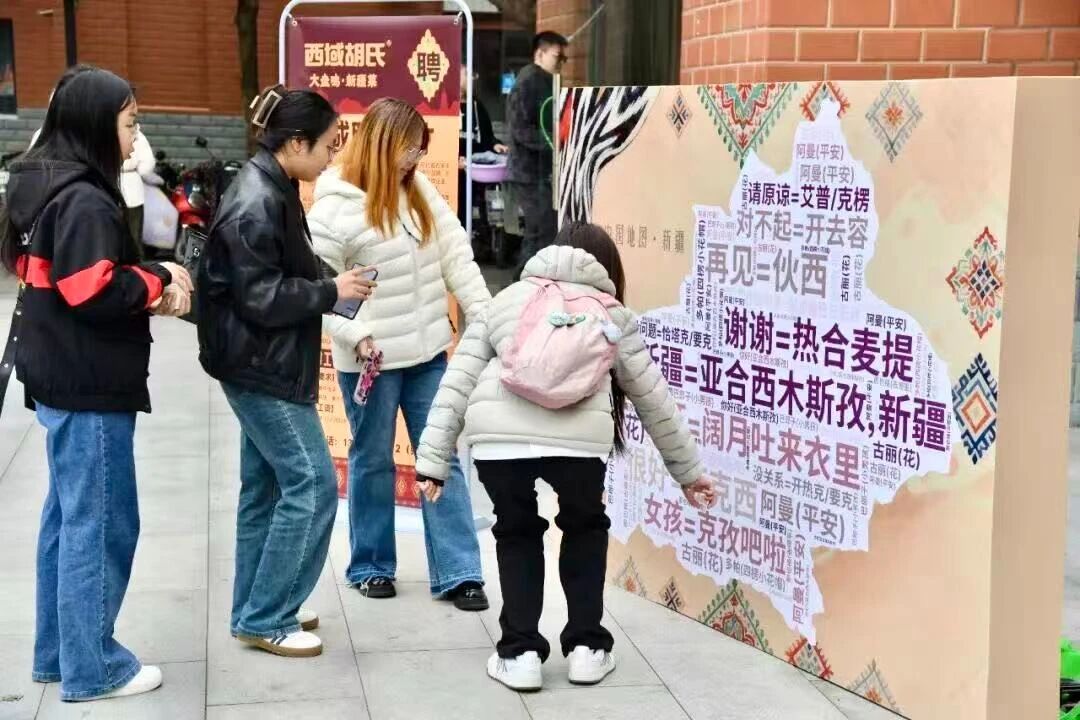 在语言互动区,师生们积极跟着新疆籍学生学习维吾尔语日常用语。“亚合西木斯孜(你好)”“热合麦特”(谢谢)等亲切的问候语,搭建起心灵相通的桥梁 。