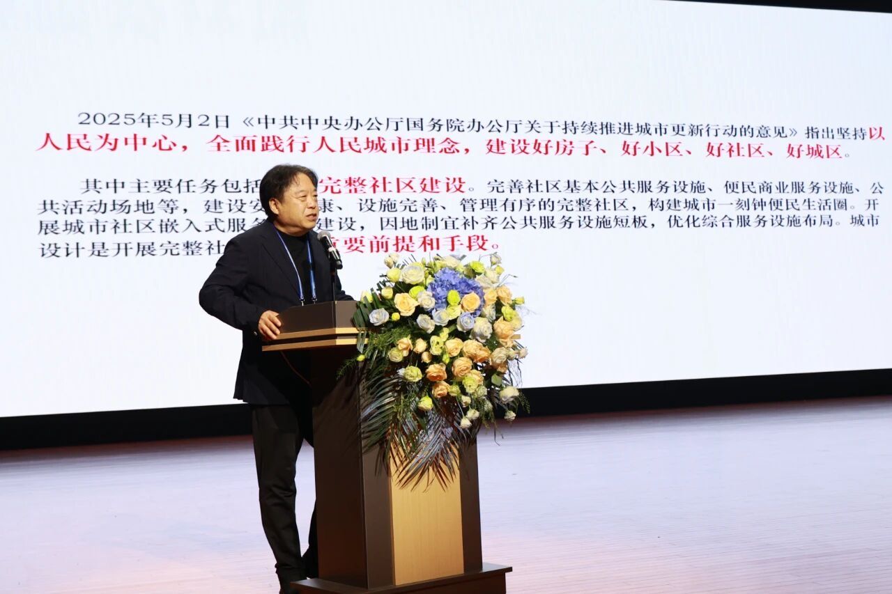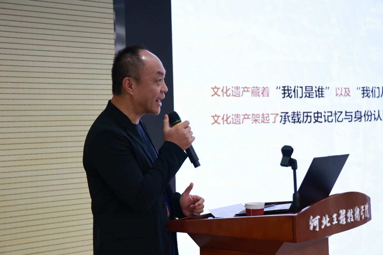 河北工程技术学院党委书记常新平致欢迎辞。他对远道而来的国内外嘉宾、学者和建筑大师表示热烈欢迎与诚挚感谢,并简要介绍了学校的发展历程、成就以及“十五五”发展规划的基本构想。河北省高等教育学会会长王廷山、河北省住建厅二级巡视员郁达飞分别致辞,并对大会的召开表示祝贺,并从不同角度解读了国家关于城市更新的相关政策。 在主旨报告环节,四位国内外知名专家带来了精彩纷呈的学术分享。河北省建筑设计研究院有限责任公司董事长、总建筑师、河北省建筑大师郭卫兵以《城市视角下的城市更新》为题,分享了本土实践的深刻思考;意大利建筑设计公司创始人马里奥·卡迪那斯在《建筑与环境:迈向再生设计》中,引入了前沿的国际设计理念;河北工程技术学院副校长武勇教授结合本校实践,作了《城市更新视角下的校园更新》的专题分享;意大利Baoblab创始人吉罗拉莫·巴尔巴恰以《超越区规划:为幸福和快乐设计城市,城市共存与情感可持续性的新逻辑》为题,探讨了城市规划中的人文关怀与情感维度。各位嘉宾的分享内容详实、案例生动、观点新颖,辅以精美的视觉材料,为与会者带来了强烈的思想碰撞与艺术震撼。