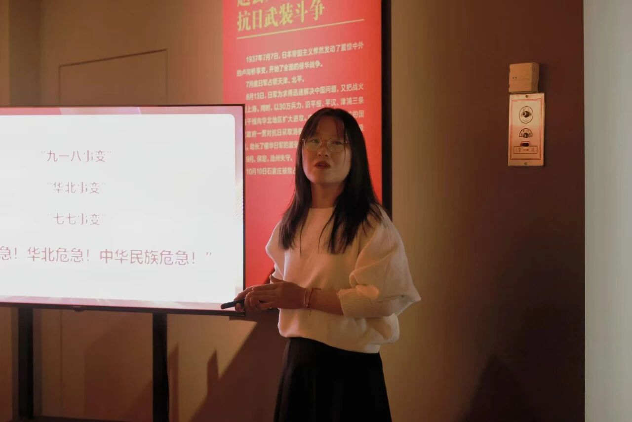 在讲解员的带领下,全体师生先后参观了综合馆内“畿辅之地 赵州溯源”“文化遗存 千年守望”等七个主题展厅,系统了解了赵县从历史沿革到当代发展的完整脉络。在“红色印迹,峥嵘岁月”展厅,马克思主义学院教师冯润青以“苦难印记、不屈抗争、党的引领、精神传承”为主线,为师生带来一堂生动的现场思政课。她结合赵县人民在抗日战争中的英勇事迹,引导学生直面历史、抵制历史虚无主义,真正做到学史增信、学史力行。