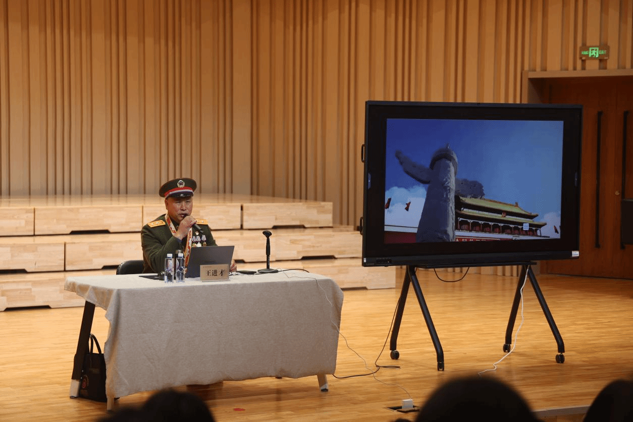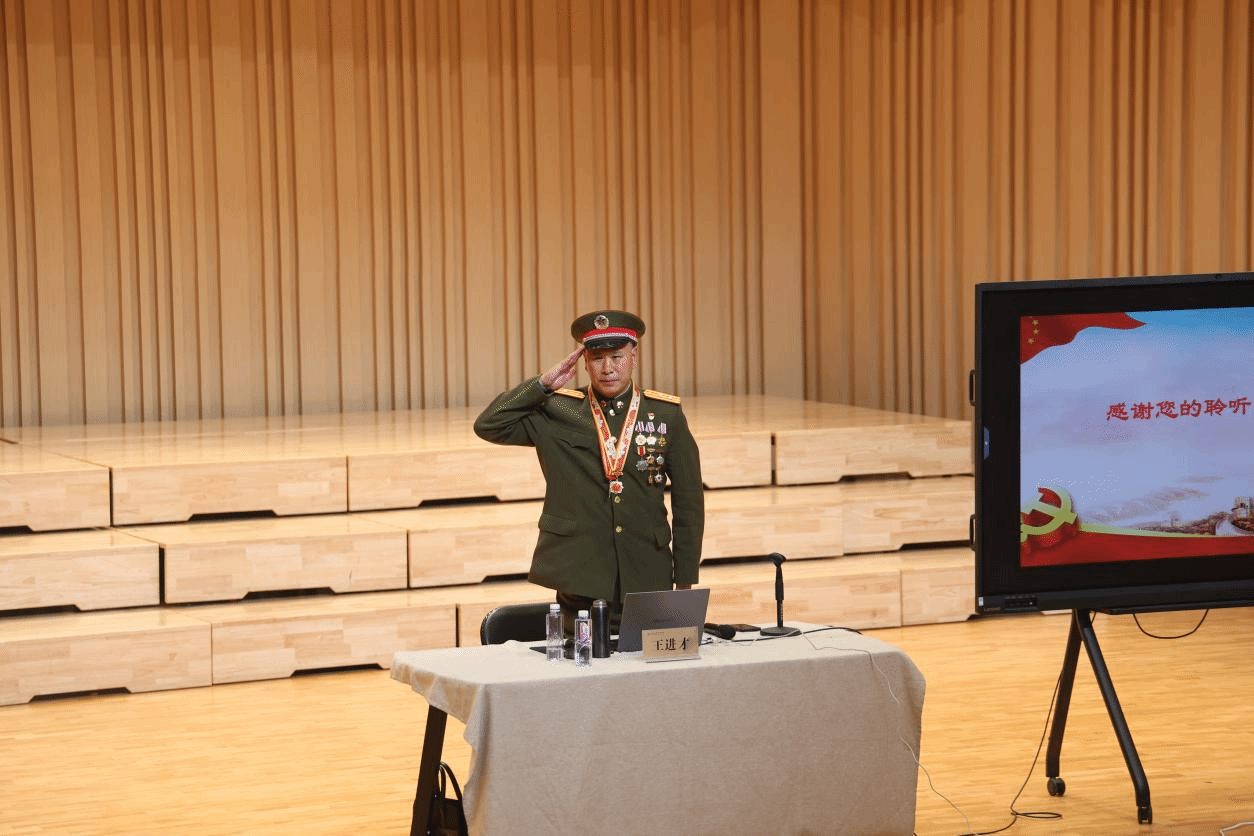 学院党总支书记付华轩在开场讲话中介绍了主讲人王进才同志——一位从战斗英雄到纪检监察尖兵,再到传播正能量的“大思政课”教师的时代标杆,并指出榜样是时代的灯塔,楷模是前行的力量。