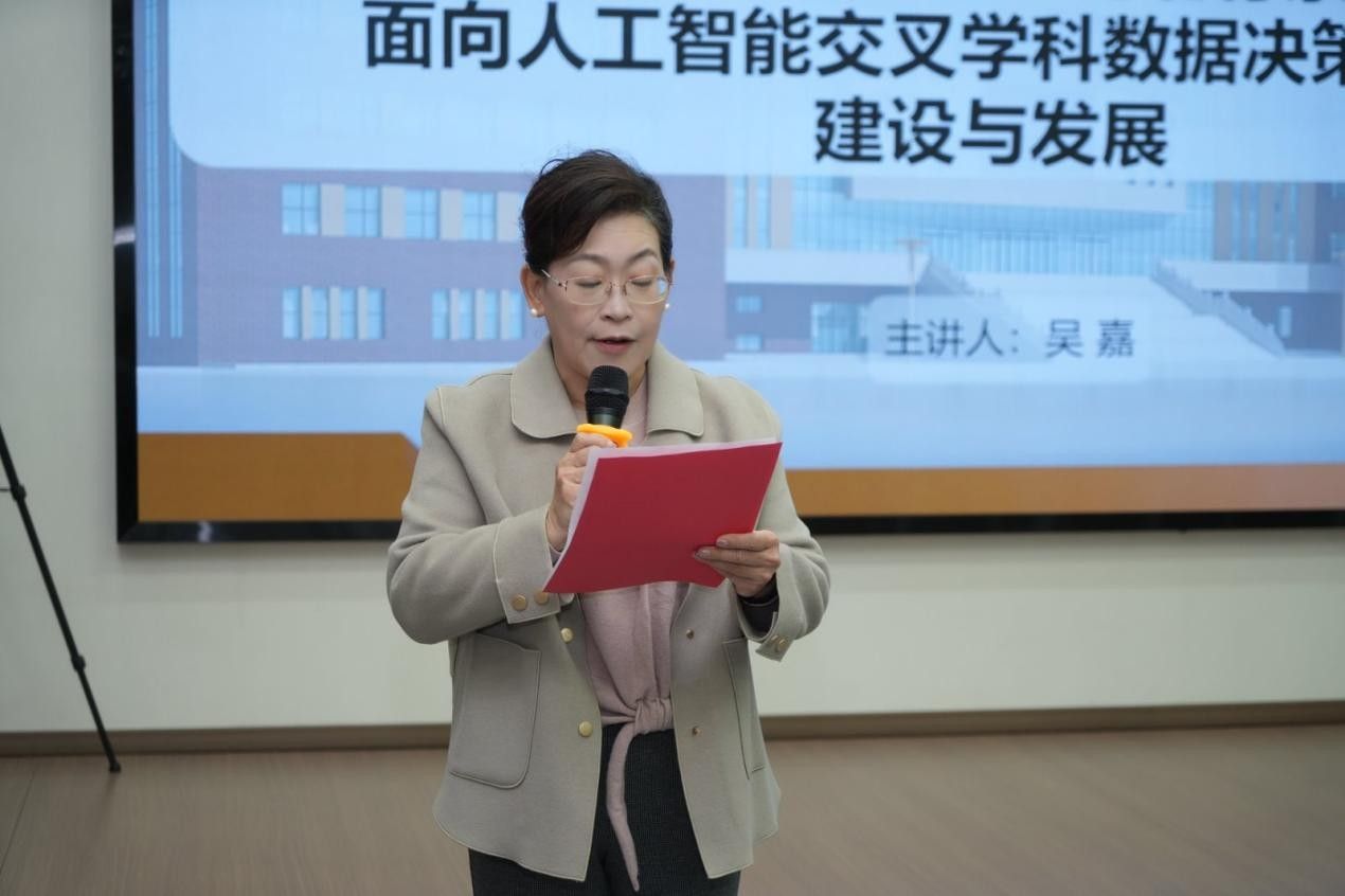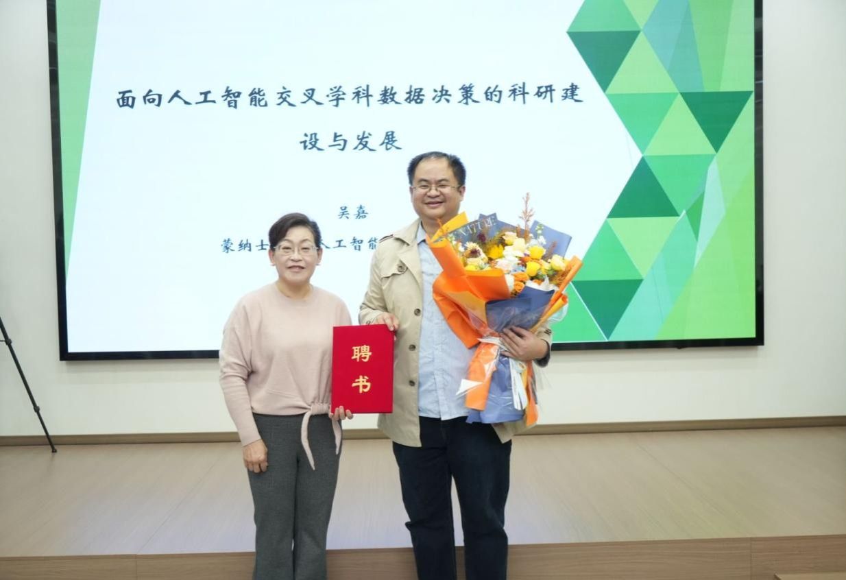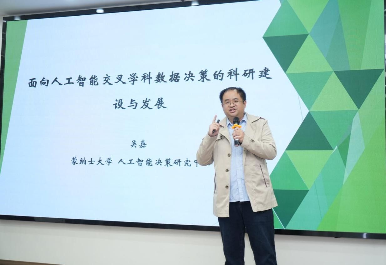 为探讨人工智能时代下交叉学科研究的新范式,推动科研工作的高质量发展,11月14日,蒙纳士大学人工智能决策研究中心主任、澳大利亚IBM医学信息产业研究院院长、中国国家智库专家组成员吴嘉教授受邀到我校开展“面向人工智能交叉学科数据决策的科研建设与发展”专题学术报告,人工智能学院相关负责人及全体教师参加。报告会由人工智能学院院长王静红主持。