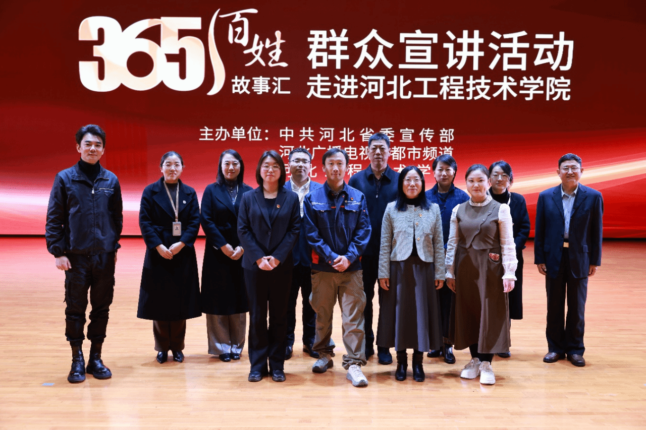 11月19日下午,由中共河北省委宣传部主办的“365百姓故事汇”群众宣讲活动第四站走进我校,讲述真实河北好故事,传播河北好声音。河北广播电视台都市频道副总裁刘雁北,校领导,党委组织部、党委宣传部、商学院负责人及师生代表参加活动。活动由河北广播电视台《365百姓故事汇》主持人刘迪主持。