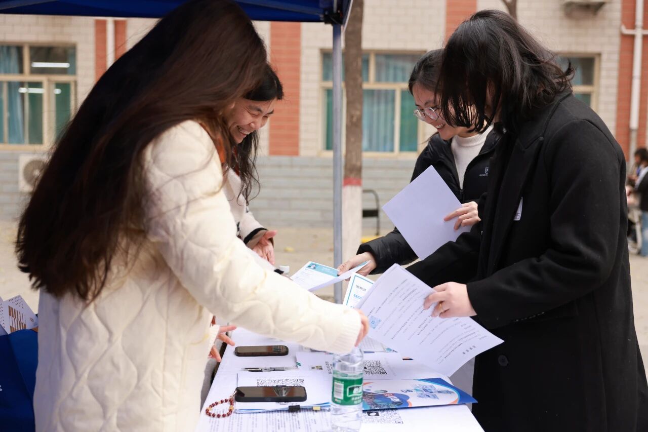 仪式结束后,安黎哲校长一行实地走访招聘会现场。先后驻足河北翎贺计算机信息技术有限公司、北京中企未来科技集团有限公司等多家优质企业展位,与企业代表亲切交流,深入了解人才需求趋势和招聘进展,并对企业长期以来对学校人才培养工作的支持表示感谢。