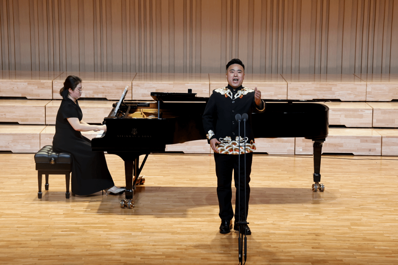 合唱团以饱满的热情和精湛的技艺,倾情演绎了16首风格多样、铿锵有力的经典歌曲。激昂的旋律如嘹亮号角,唤醒观众心中的青春热血,点燃全场激情。艺术与传媒学院声乐歌剧系专任教师闫晓、魏佳作为助唱嘉宾,演唱了歌曲《沂蒙山永远的爹娘》《战士为国守安详》两首作品。