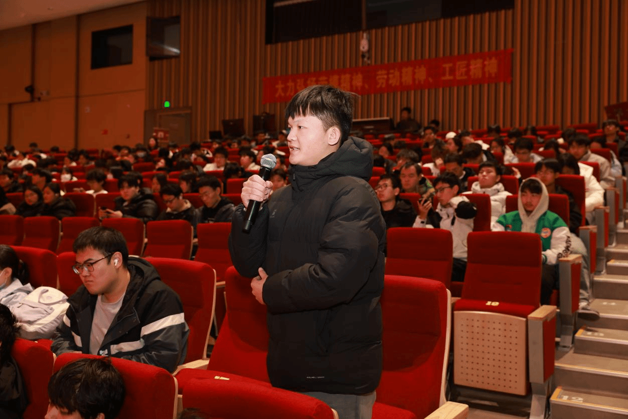 在互动环节中,同学们踊跃提问,在与劳模工匠的零距离交流中,真切感受其坚守初心的人格魅力与精益求精的精神风采。