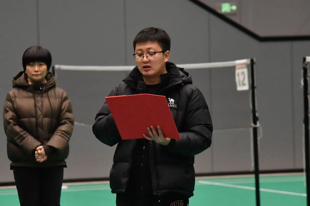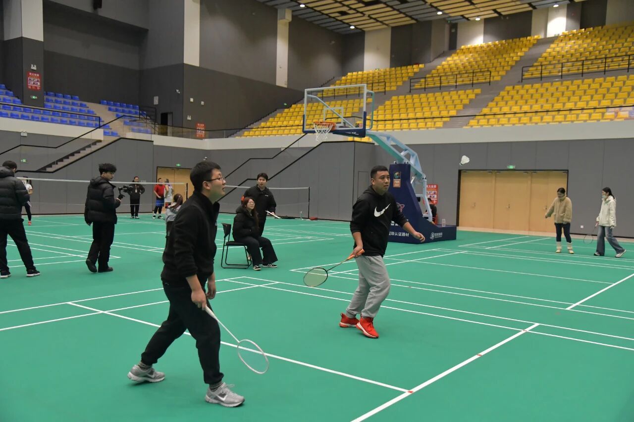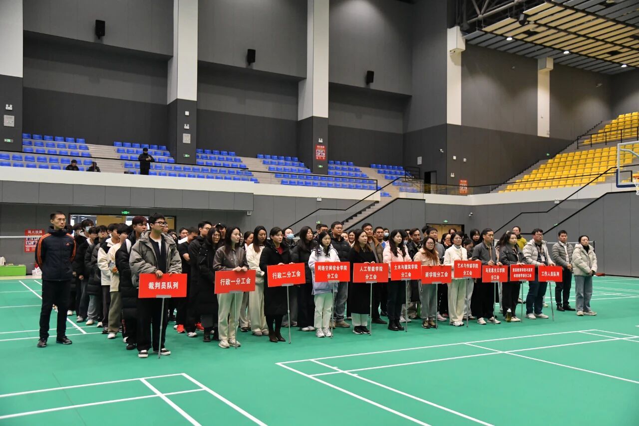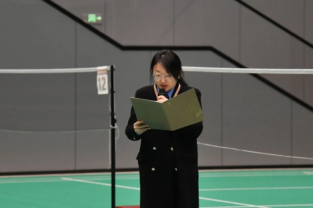 在全场热烈的掌声中,校领导一同为赛事开球。清脆的击球声正式拉开了这场精心筹备的羽毛球赛帷幕,也点燃了全体参赛教职工的竞技热情。