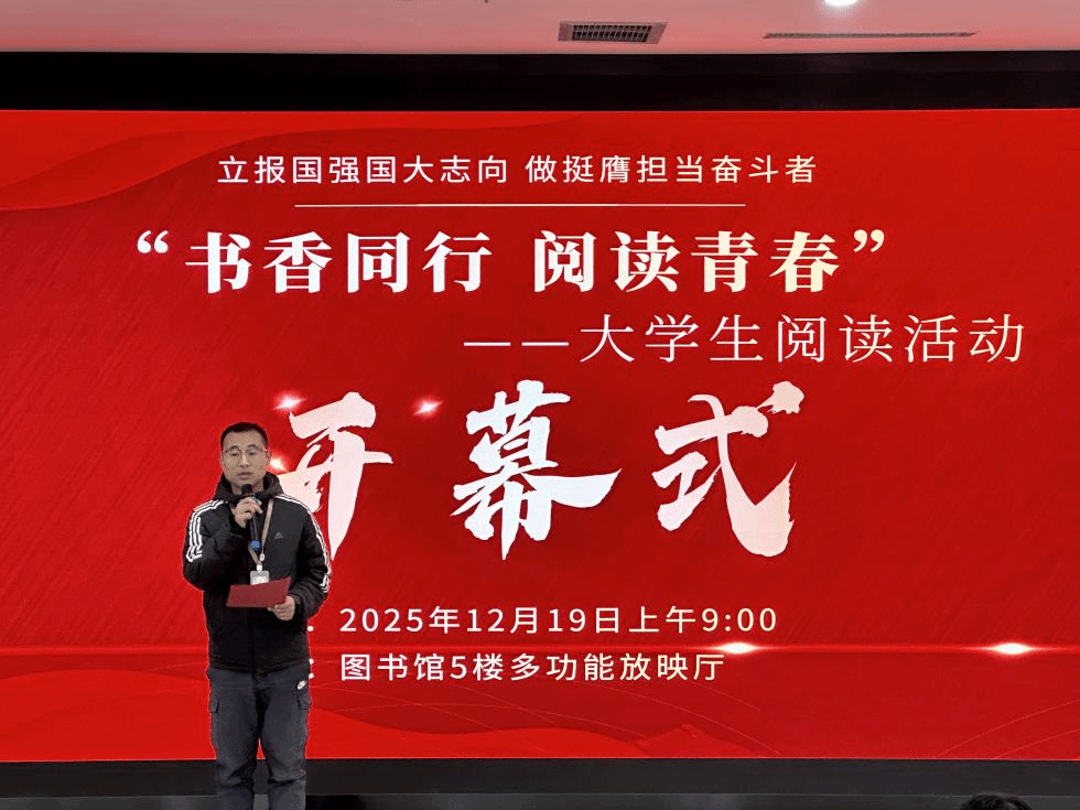 12月19日,“书香同行 阅读青春”大学生阅读活动开幕式在学校图书馆举办。党委宣传部、团委、图书馆负责人,各二级学院副院长及读者协会代表等出席活动。