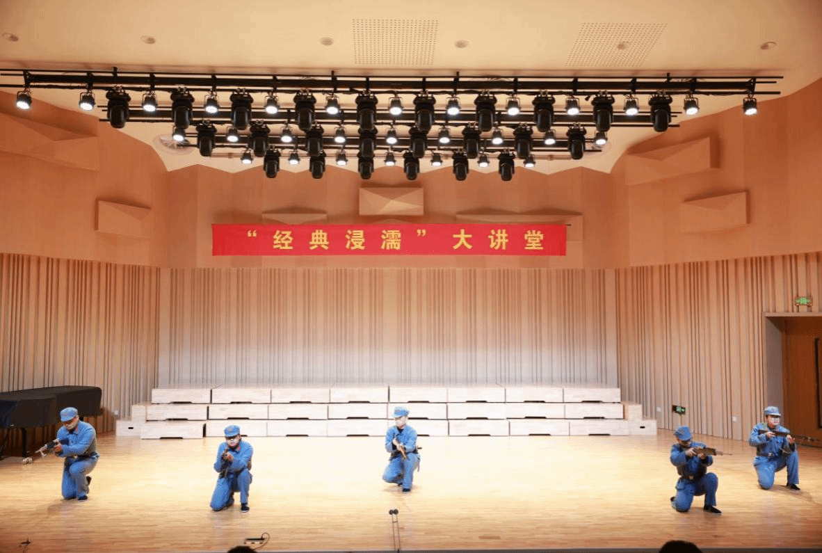 近日,“经典浸濡”大讲堂第八十四讲在校音乐厅举办。本期讲堂以“百年风华 美育润心”为主题,呈现了一场思想深刻、艺术感染力强的沉浸式教育活动。本期大讲堂由美育教学部尹伽沅老师主讲。她以时间为脉络,通过话剧、舞蹈、音乐等艺术形式,串联百年爱国故事,深度融合经典文化、红色历史与时代精神,实现知识浸润与艺术熏陶有机融合,打造了一堂直击心灵的家国情怀教育课。