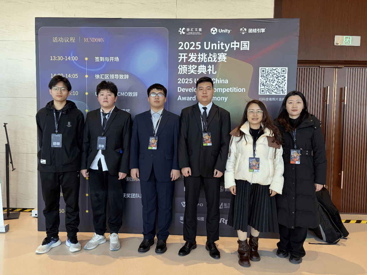 Unity中国开发挑战赛由中国音数协游戏工委(GPC)指导、Unity中国联合主办,汇聚了全国顶尖高校与行业精英,被视为VR/AR领域技术实力与创新能力的权威标杆。经过激烈角逐,我校人工智能学院李富、孙朝阳等同学组建的团队脱颖而出,荣获XR应用赛区—VR应用赛道铜奖。