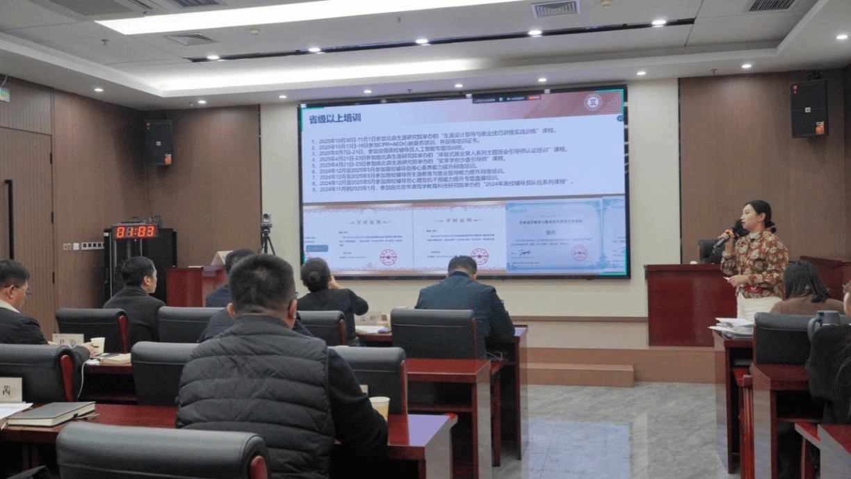 为充分发挥优秀辅导员的示范引领作用,彰显辅导员队伍建设成果,推动辅导员队伍专业化、职业化发展,近日,我校开展2025年“优秀辅导员”评选活动。校领导,党政办公室、教务处(教师发展中心)、学生工作处、人事处、纪检督察处及各二级学院相关负责人,全体辅导员共同参会。