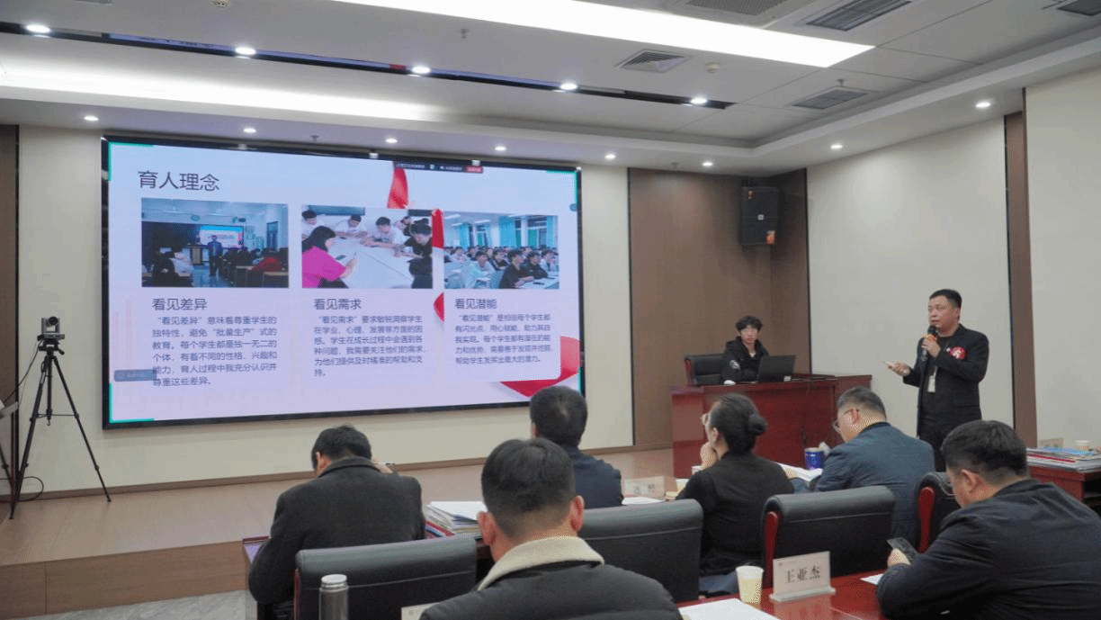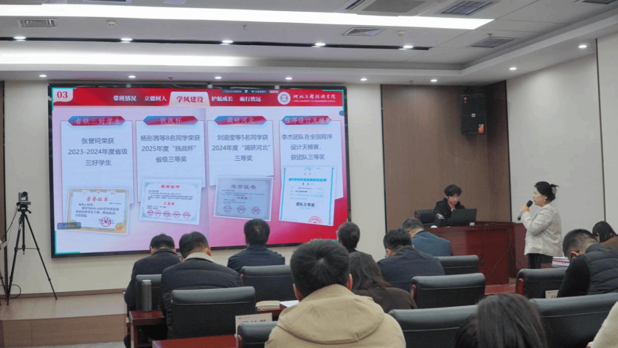 评选会上参评辅导员依次上台,围绕思想引领、班风建设、学业帮扶、心理关怀、生涯指导与日常管理等方面,结合翔实的工作案例与可推广的育人成果,进行业绩汇报。一张张图片、一组组数据、一个个故事,生动展示了我校辅导员扎实的理论功底、深厚的育人情怀与出色的工作成效。评审团依据候选人的申报材料、现场表现、工作实绩及综合素养等维度进行评分,确保评选过程公平、公正。