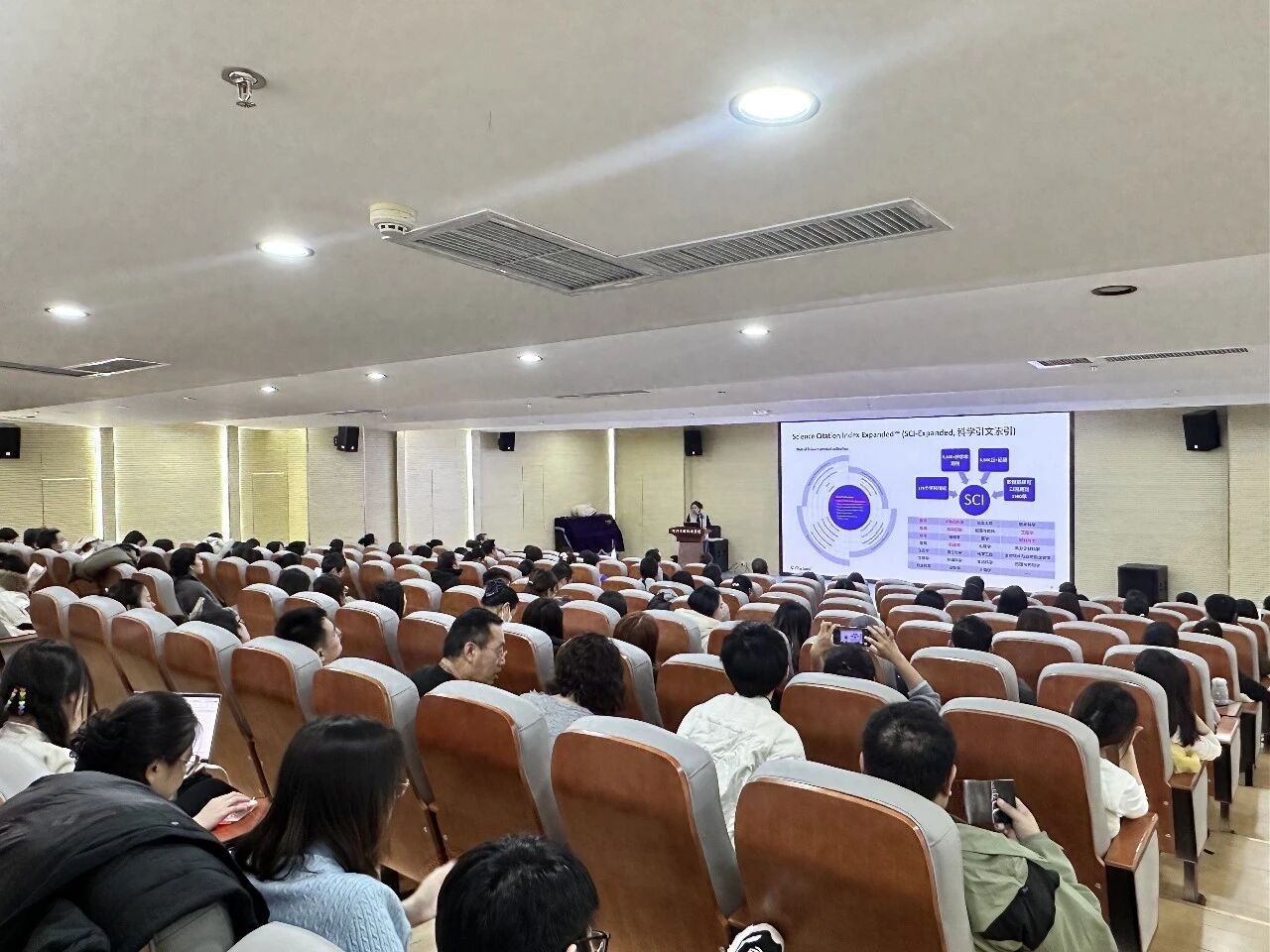 近日,我校图书馆在五楼多功能放映厅举办“Web of Science(SCIE)检索写作选刊投稿”专题讲座。本次讲座特邀科睿唯安解决方案专家陈元方担任主讲,旨在系统提升全校教师的科研信息素养与高水平学术论文发表能力。活动吸引了百余名教师参与,现场学习氛围浓厚。