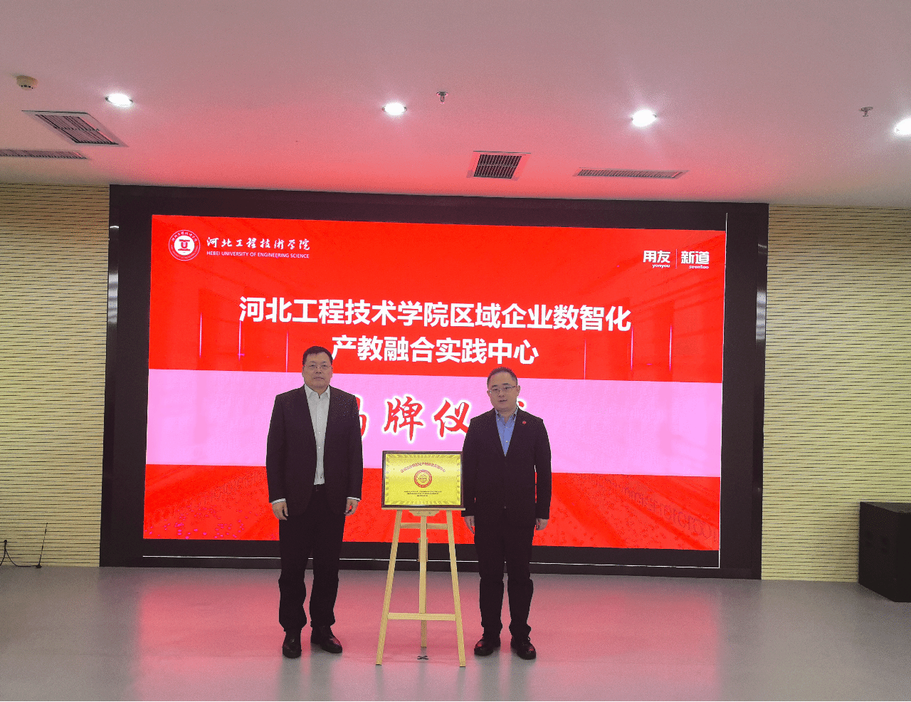 在与会嘉宾的共同见证下,安黎哲校长与许鹏总裁共同为“区域企业数智化产教融合实践中心”揭牌,标志着该实践中心正式启动运行。
