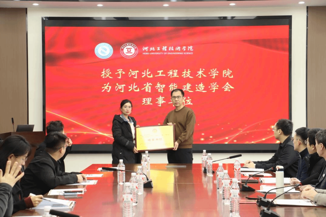 会上,河北省智能建造学会举行了授聘仪式,我校被授予学会理事单位,杜慧慧老师受聘为理事,张隆老师受聘为副秘书长,标志着我校进一步融入区域智能建造行业生态。