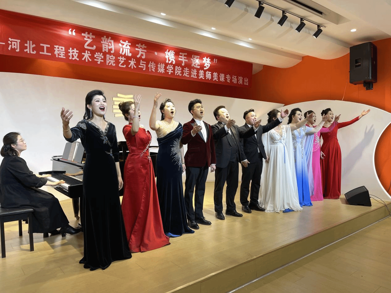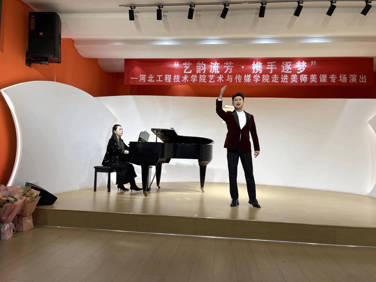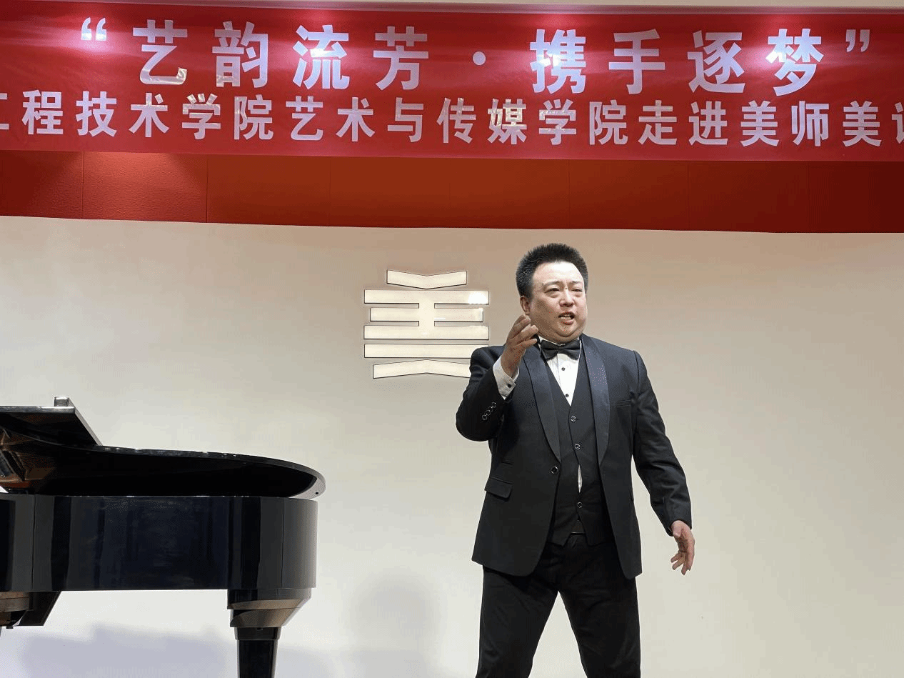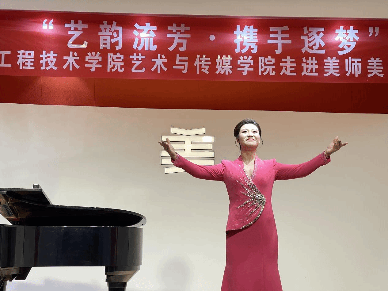 近日,我校应邀走进美师美课艺术培训学校,举办“艺韵流芳・携手逐梦”专场演出活动。我校艺术与传媒学院精心选派声乐歌剧系曾获国家级、省级大赛奖项的优秀教师组成演出团队,呈现了精湛的艺术水准。