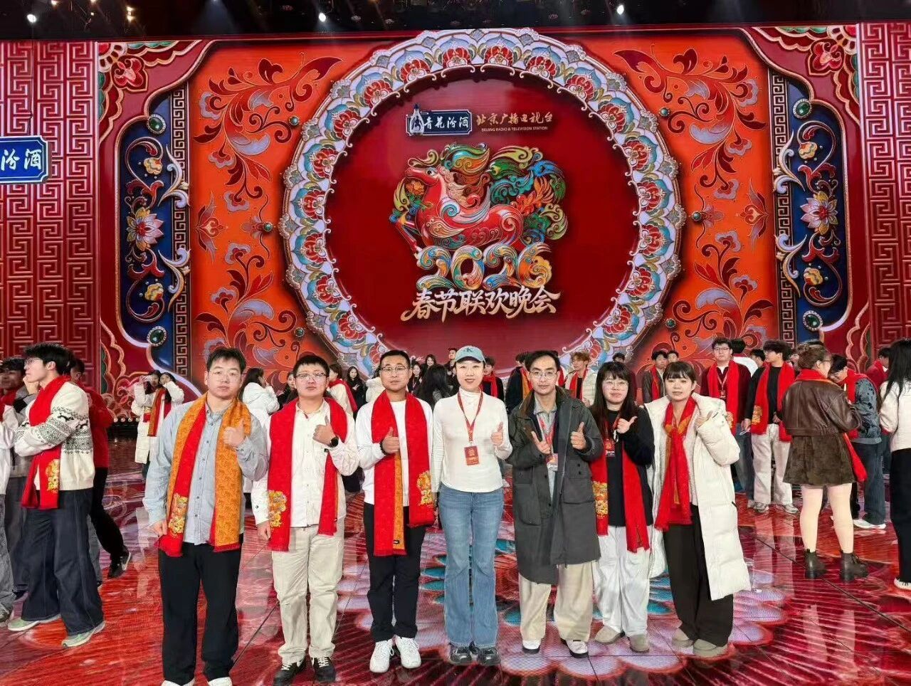 晚会上,我校学子的身影活跃在台前幕后。他们不仅是《人生得意须尽欢》《青梅竹马》等节目中青春律动的伴舞者,更承担起现场氛围带动及环节衔接等工作。同学们以高度的责任感和出色的综合素质,全心融入“团圆、欢庆”的春晚现场,以文明、热情和活力展现了新时代中国大学生的风采,也为全国观众献上了一份真挚的新春祝福。