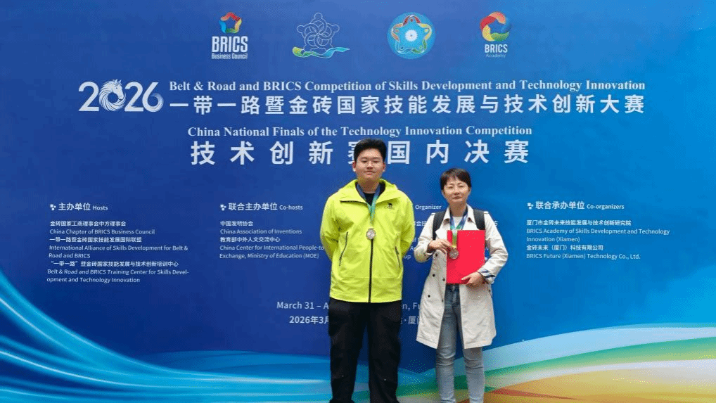 近日,2026“一带一路”暨金砖国家技能发展与技术创新大赛(简称金砖技能大赛)国内决赛在厦门圆满落幕。我校首次参赛即斩获佳绩,荣获智能先进制造赛道国家二等奖、三等奖各1项。