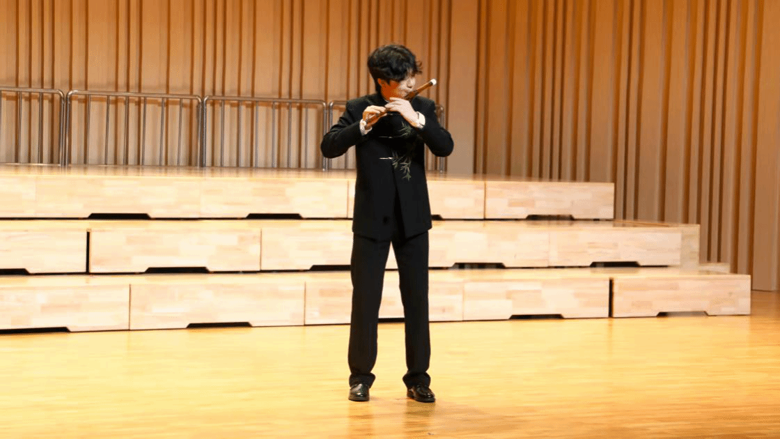 演出在琵琶曲《诉——读唐诗〈琵琶行〉有感》中拉开帷幕,演奏者丰泽雪以婉转灵动的弦音,将白居易笔下的千古慨叹与家国情怀娓娓道来,让现场观众在丝竹声中感悟中华文脉的源远流长与深厚底蕴;《冬猎》以激昂的旋律勾勒出鄂伦春族狩猎的壮阔场景,传递出中华民族自强不息、奋勇拼搏的精神内核;古筝独奏《桃花源》则以虚实相生的乐音,展现了中华传统文化的诗意之美。《肖邦升c小调夜曲》传递出细腻深沉的情感,《张帅三首前奏曲第一首》展现中国当代钢琴创作的独特魅力,笛子曲《小放牛》勾勒春日田园的鲜活画面,古筝曲《晨兴》融合传统与现代元素。《彩云追月》以轻快灵动的旋律将现场气氛推向高潮,为整场演出画上圆满句号。