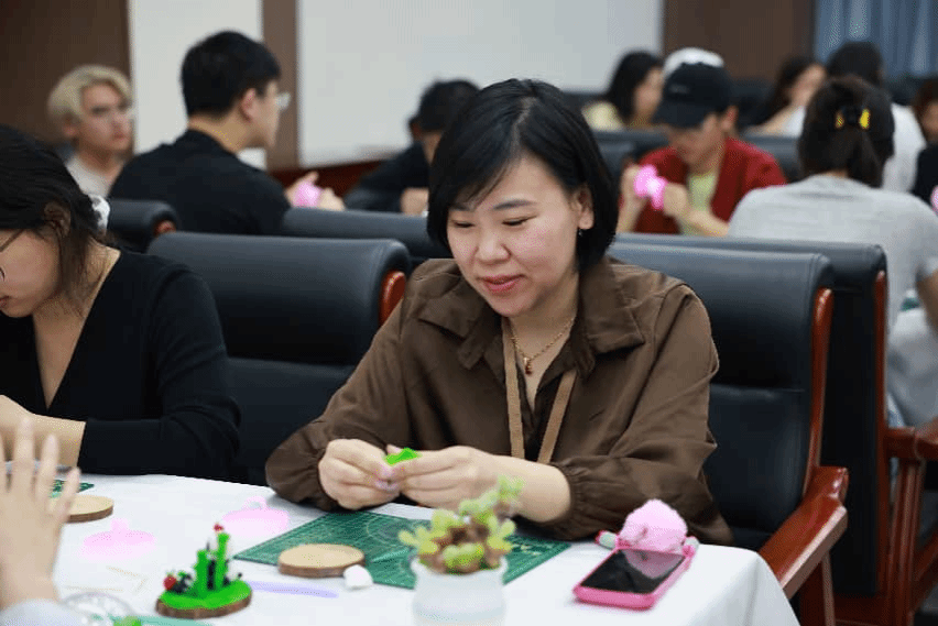 本次活动中,赵海贞老师聚焦国宝大熊猫的制作,对面塑技艺进行了细致教学。她演示了揉面、塑形的完整流程,逐一拆解技艺要点,中外学子认真聆听、仔细观摩,随后纷纷动手实践。我校美育教学部老师全程参与指导,从造型美感、色彩搭配等专业角度,引导大家在动手实践中体悟传统工艺的审美价值,在文化交流中提升审美素养。