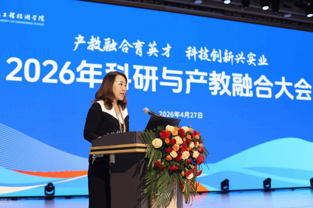 4月27日,我校召开2026年科研与产教融合大会。本次大会以“产教融合育英才,科技创新兴实业”为主题,紧扣学校“十五五”高质量发展战略部署,聚焦科研创新与产教融合协同发展,全面总结过往工作成效、表彰先进典型、部署年度重点任务,为学校科研工作提质升级、深度服务区域经济高质量发展夯实基础。会议由科研与产教融合处处长王素贞主持。