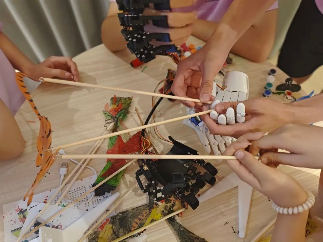 团队发挥专业优势,探索“皮影+物联网”新形态。队员们将Arduino控制器与舵机结合,通过嵌有传感器的手环,可实现手势操控皮影人偶。这套“手势—舵机”联动系统,既保留传统皮影灵动韵律,又以物联网技术突破人机交互边界,为皮影注入科技活力。