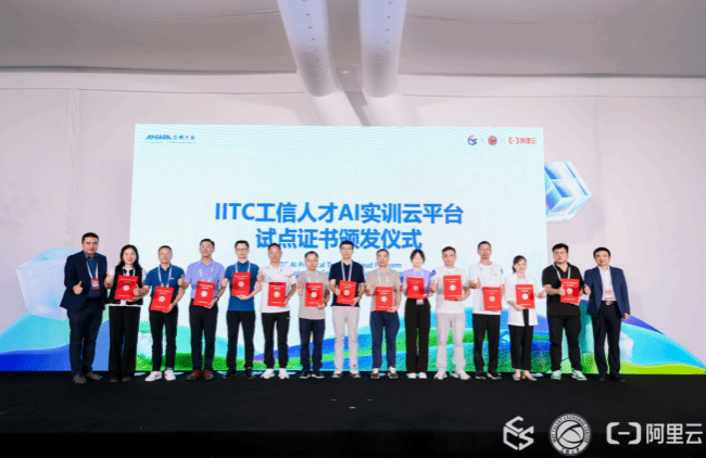 据悉,IITC工信人才AI实训云平台是深入贯彻落实《教育强国建设规划纲要(2024-2035)》的重要举措,由工信部人才交流中心、阿里云智能集团、湖北易康思科技有限公司共同推动建设。平台旨在以云计算、人工智能等前沿技术为支撑,推进教育基础设施云化升级,整合产业与院校资源,构建覆盖“人才标准制定—教育培养—能力评价—招聘就业”的全链条人才生态体系,为数字化人才培养提供创新平台。