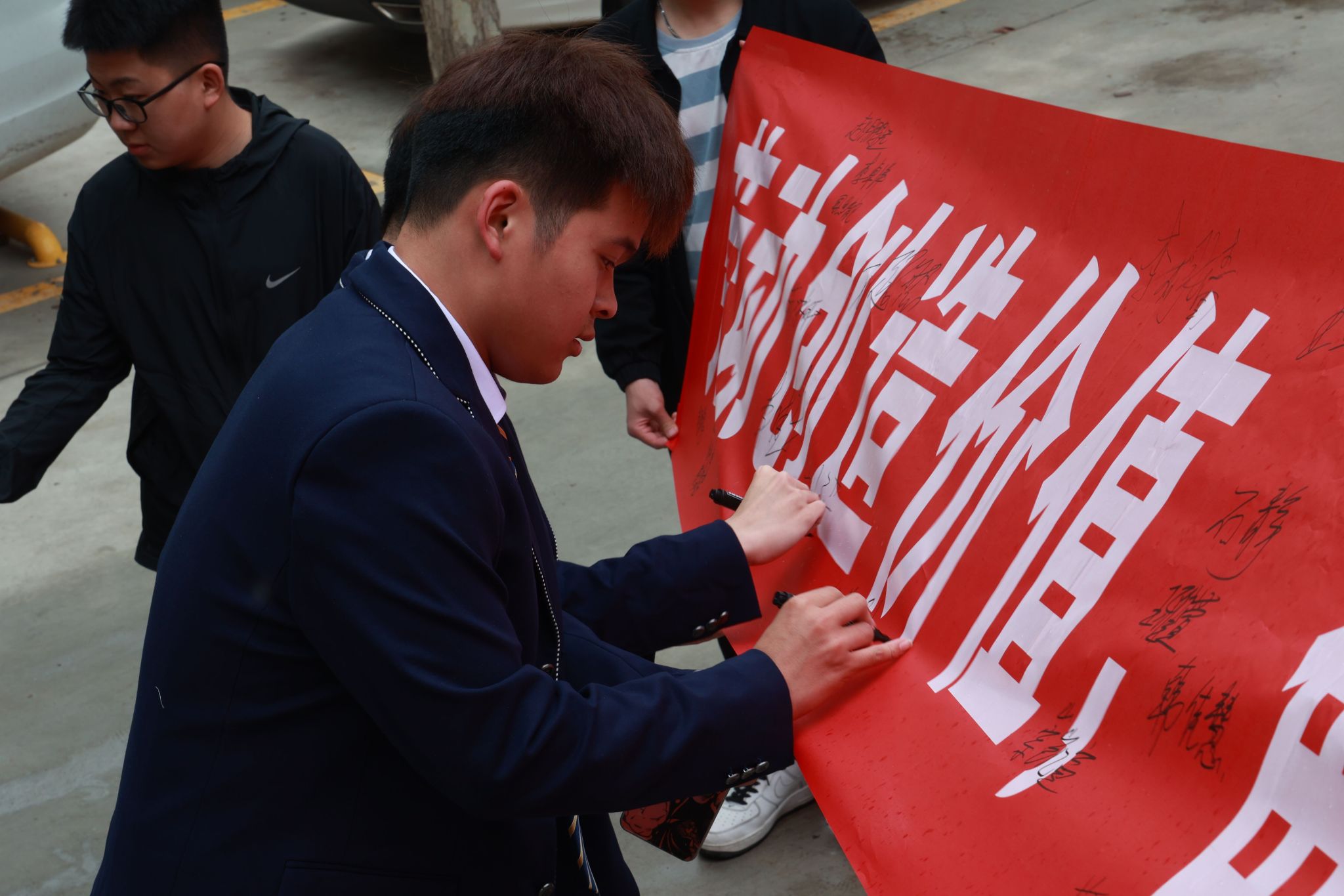 学生在倡议书上签名