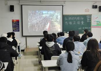 3月28日,学院大学生社团联合会在主教各班责任教室举办“扬时代精神 传播正能量”为主题观影活动。其旨在引导学院团员青年自觉树立和践行社会主义核心价值观,善于从中华民族传统美德中汲取诚信滋养,从英雄人物和时代楷模的身上感受道德风范。