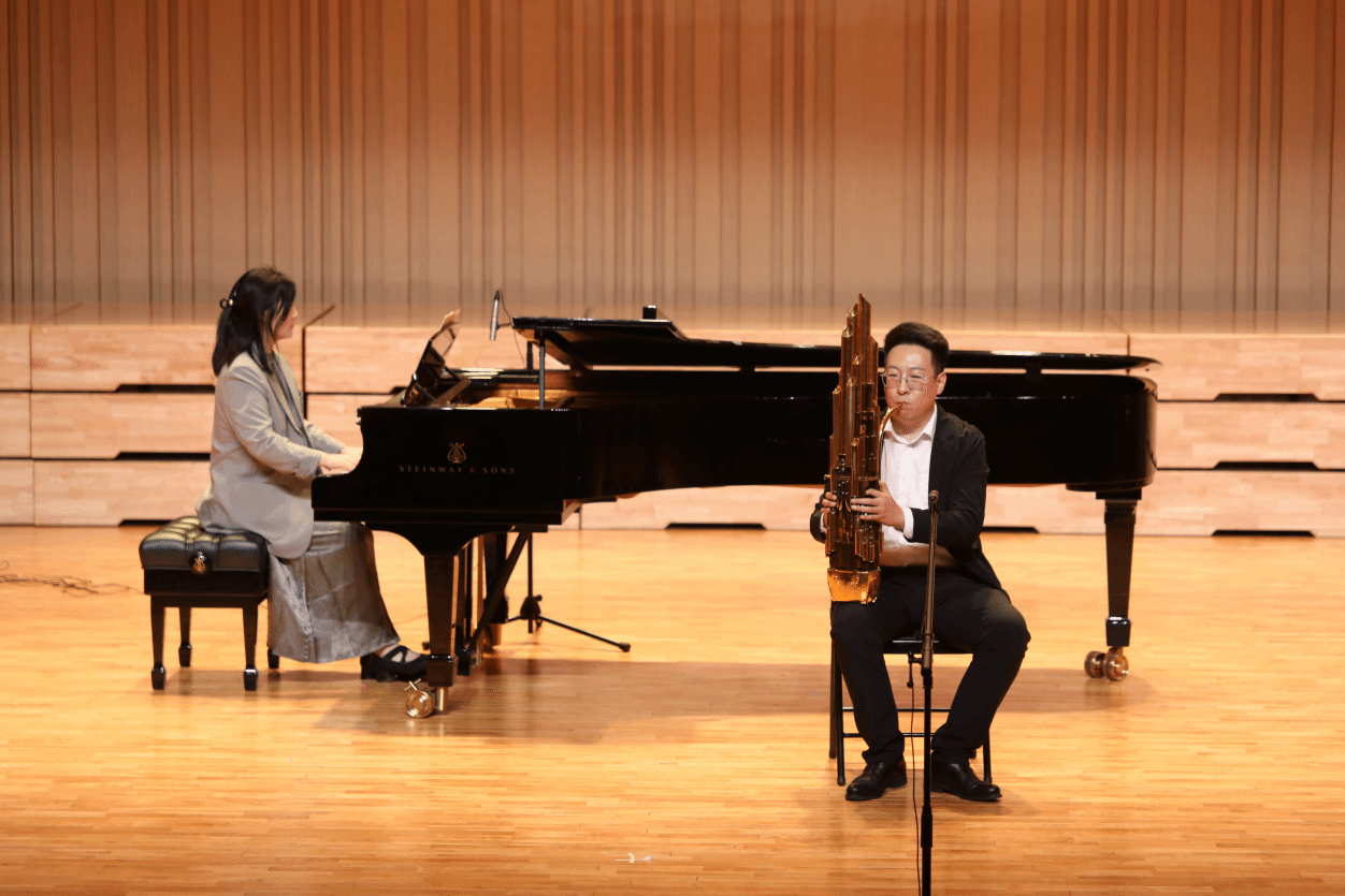 近期,我校“经典浸濡”大讲堂第七十四讲在学校音乐厅成功举办。本场活动以“乐融中西·韵承古今”为主题,由艺术与传媒学院器乐系黄莹老师担任主讲,汇聚校管乐团、筝乐团、打击乐团及多位器乐专业教师,联袂呈现了一场贯通中外、融合古今的器乐盛宴。